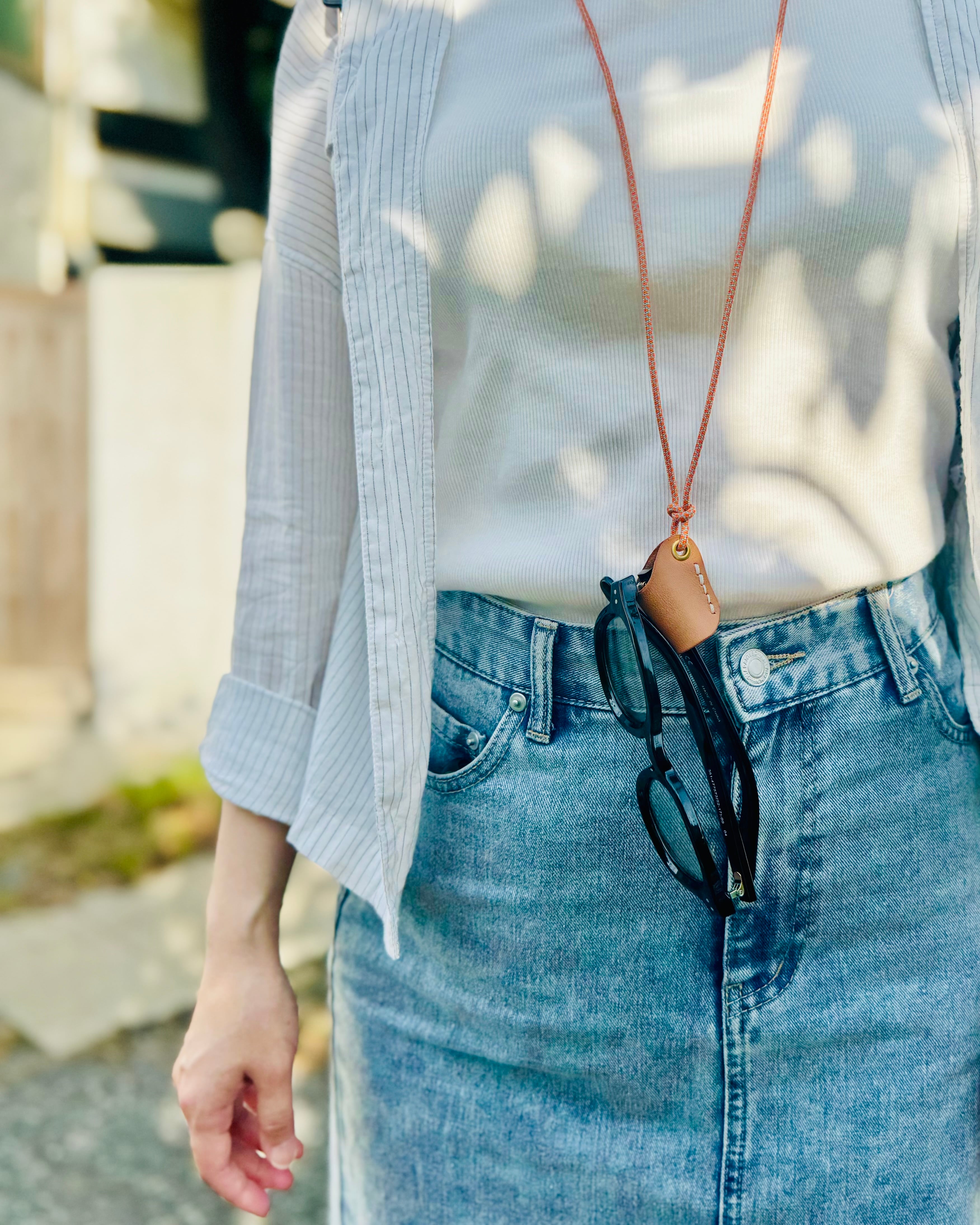 こちらは受注製作になります。 作り立てから使い手様に育ててほしい本革のペンホルダー/メガネ・サングラスホルダーです。 使用しているのは厳選した国産のヌメ革* 皮から革へ“鞣す” 植物タンニン剤を入れたピットへ数週間漬け込み丁寧に仕上げられた皮革です。 化学物質を使わずに自然にも使う人にも優しい素材は使い込むほどに持つ人の自然体の魅力を彩ります。 裁断・縫製・仕上げの磨きまで職人による手仕事にて丈夫に仕立てています。 ___________________________ ◇シンプルデザインながら綺麗な曲線。 オフィス内でも外出時でもすぐに書ける首掛けタイプのペンホルダーです。 ◇ペンだけではなくメガネ・サングラスホルダーとしても◎ ◇丈夫なパラコードストラップで仕事にもプライベートにもガンガンお使いいただけます。 アウトドアシーンにもおすすめです。 ◇植物タンニン鞣しの革の醍醐味である革の経年変化は ”誰とも被らない”を超えた”私だけの特別”へと育っていきます。 【サイズ】 約4.5×3.5cm (本体部分およそのサイズ) 写真では幅1.5cmほどの太めのペンをさしています。 ストラップ長はおよそ100cm *送料ご負担軽減の為こちらの商品単品の際は簡易包装 ゆうパケットポストmini での発送になります。 ご了承くださいませ。 ___________________________ 【【【オーダー方法】】】 ①ステッチ ②金具 各種プルダウンメニューよりお選びください。 -------------------------------------------------------------------------- 皮革:栃木レザー/ナチュラル色になります。 *ストラップ A:オレンジ B:サンドベージュ C:ヌメ革紐 ①ステッチ A ホワイト B ナチュラルクリーム C キャメルベージュ D ブラウン E レッド F グリーン G ターコイズ H グレー ②金具・ホック類 GLD ゴールド色(真鍮) SLV シルバー色(ニッケル) -------------------------------------------------------------------------- *受注製作品は入金確認後の製作になります。 入金確認後通常14日間前後で発送いたしますが、受注状況等により遅れる事があります。 なるべく早くに発送したいと思っていますが一つ一つ丁寧に順番に製作しております、何卒ご了承ください。 *購入前に必ずABOUTページ注意点等一読くださいませ。 ←←← LIFE leatherworks →→→