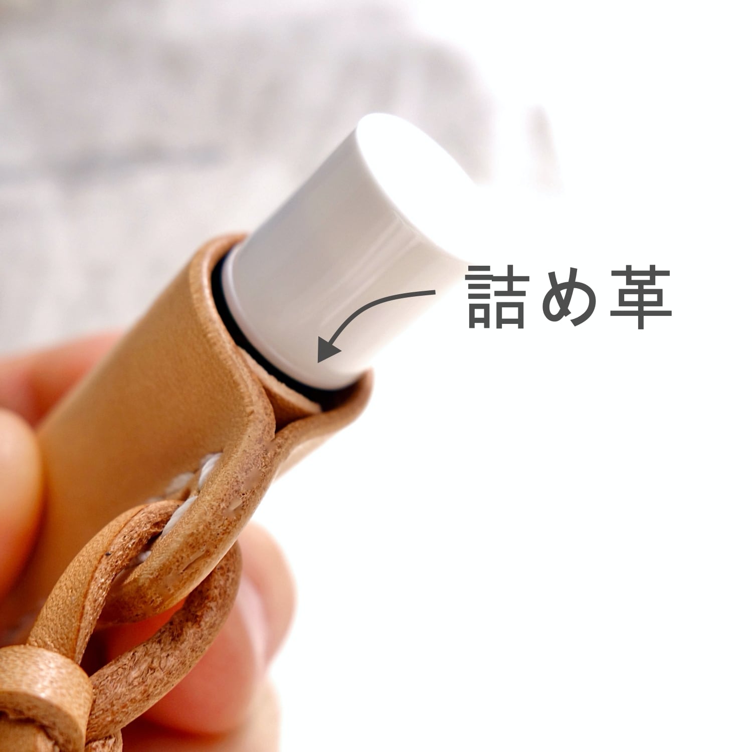 メンソレータムなど少し細いタイプには付属の詰め革を挟み込み調整いただけます。