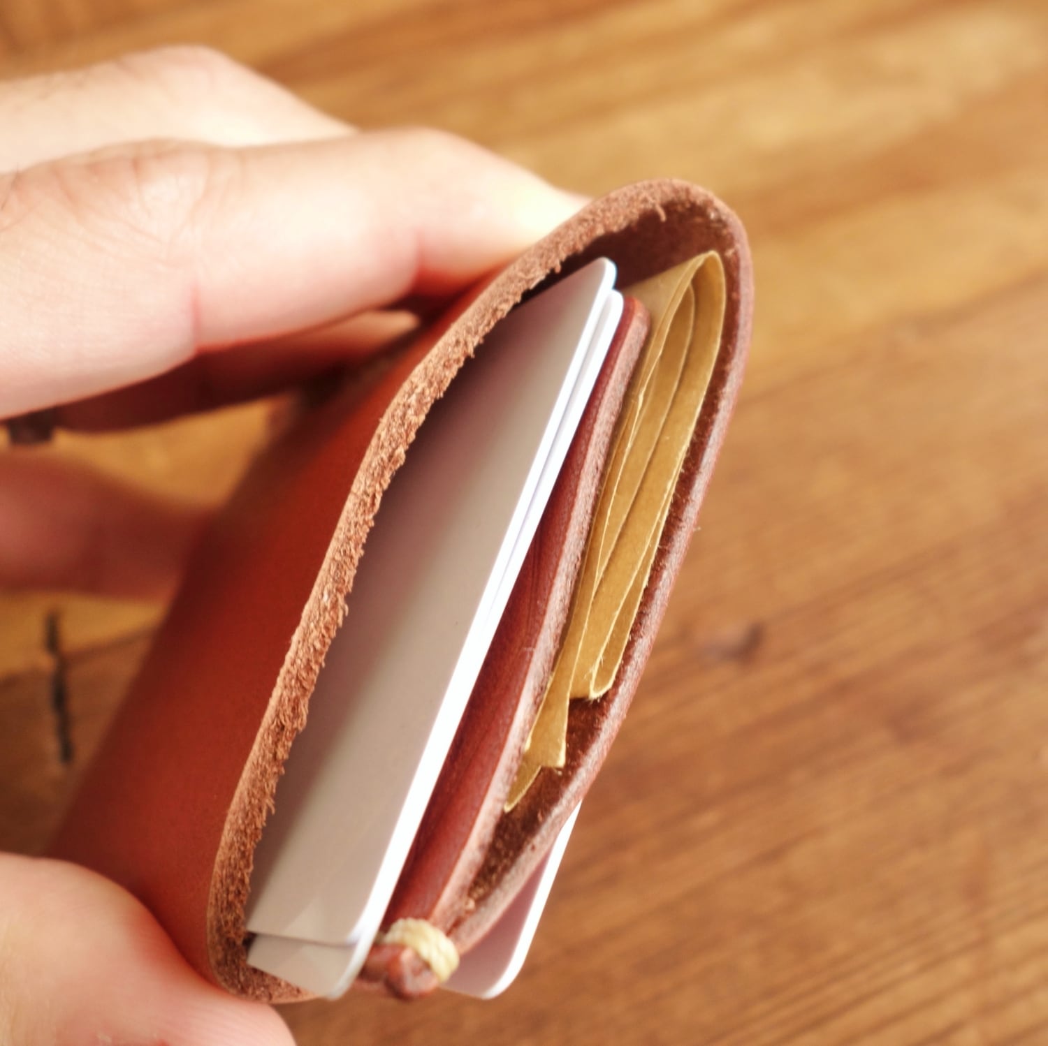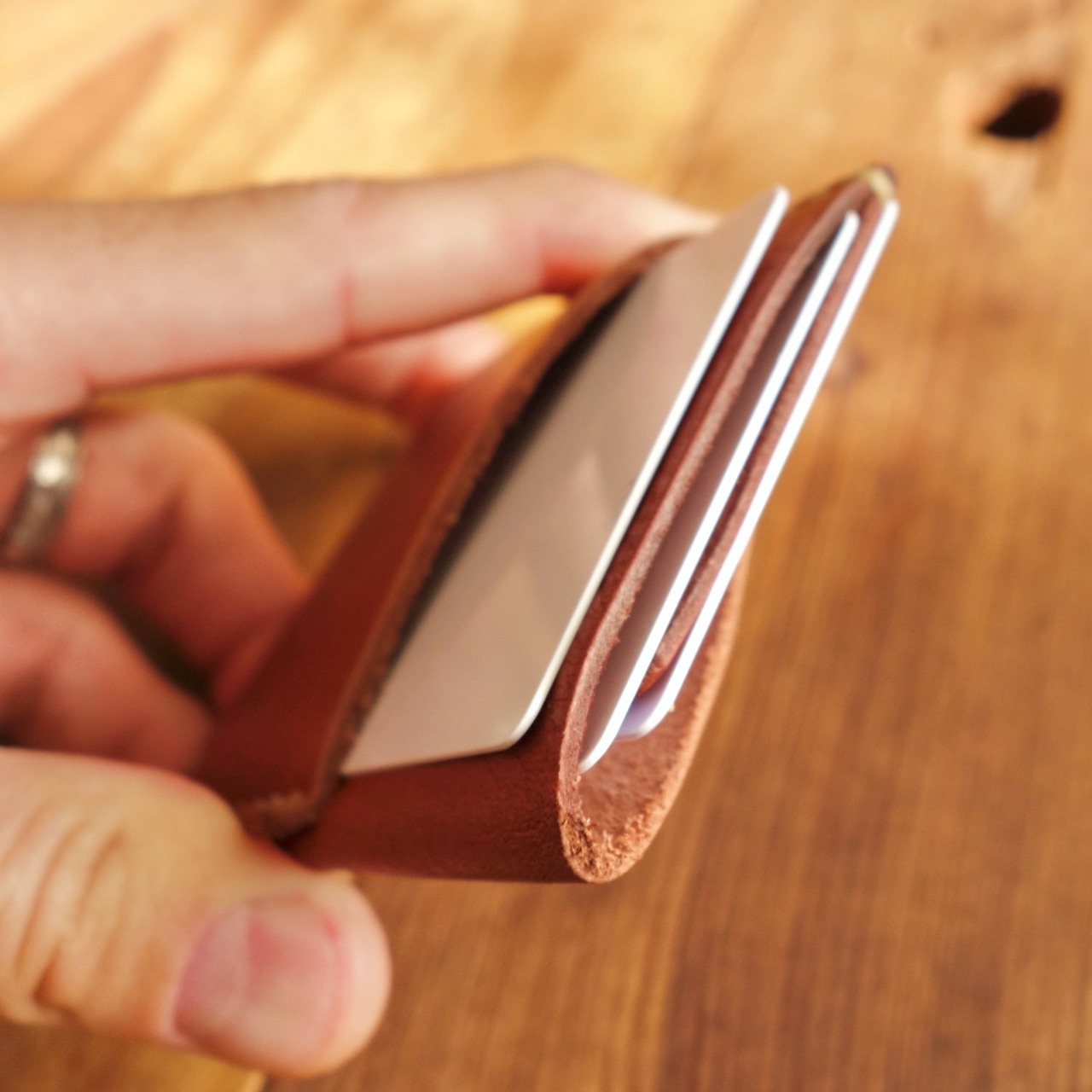 しなやかな革でお包みのようにあなたのカードを包みます。
