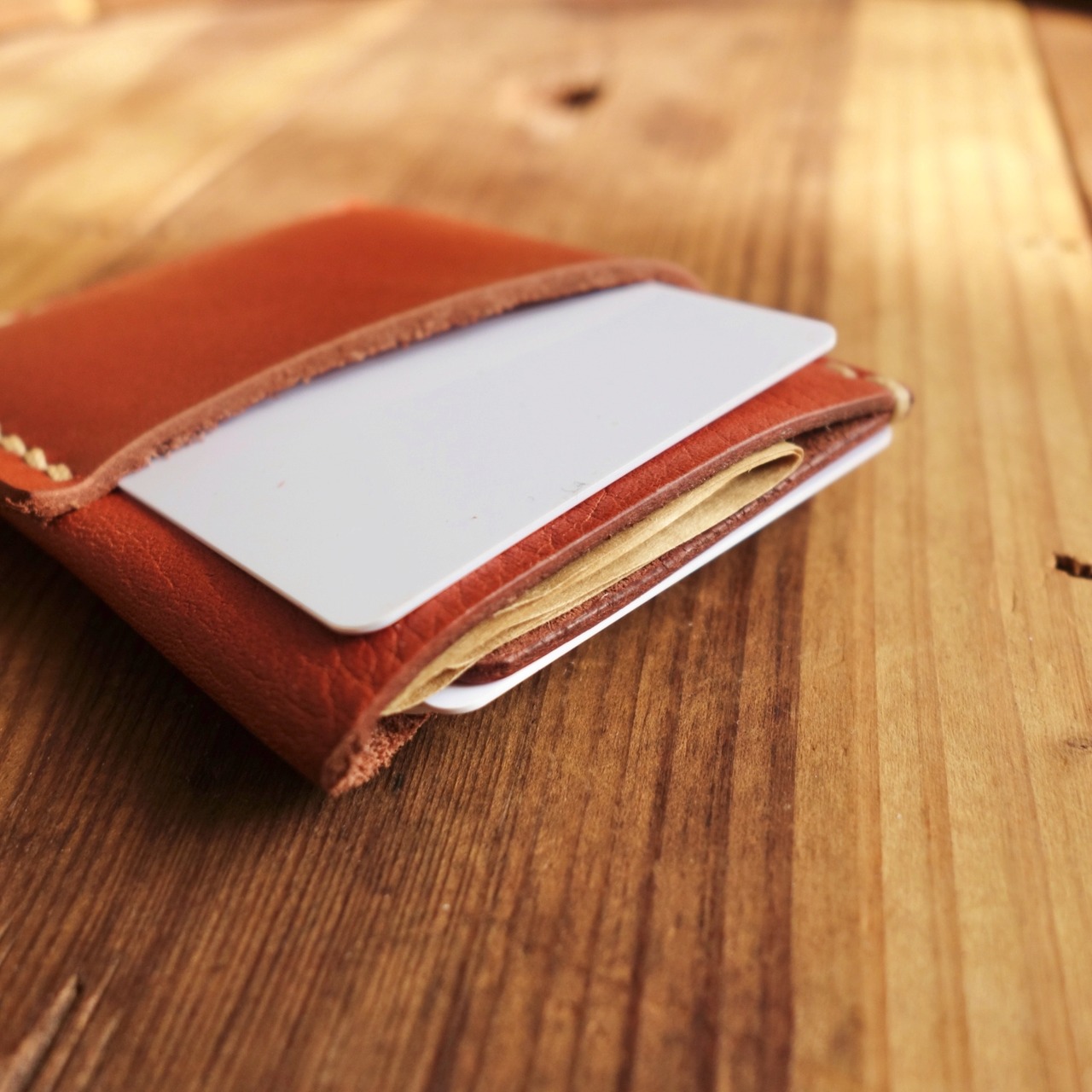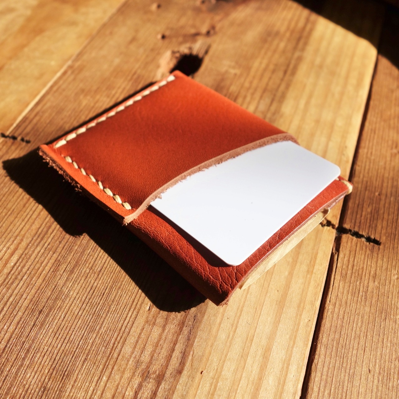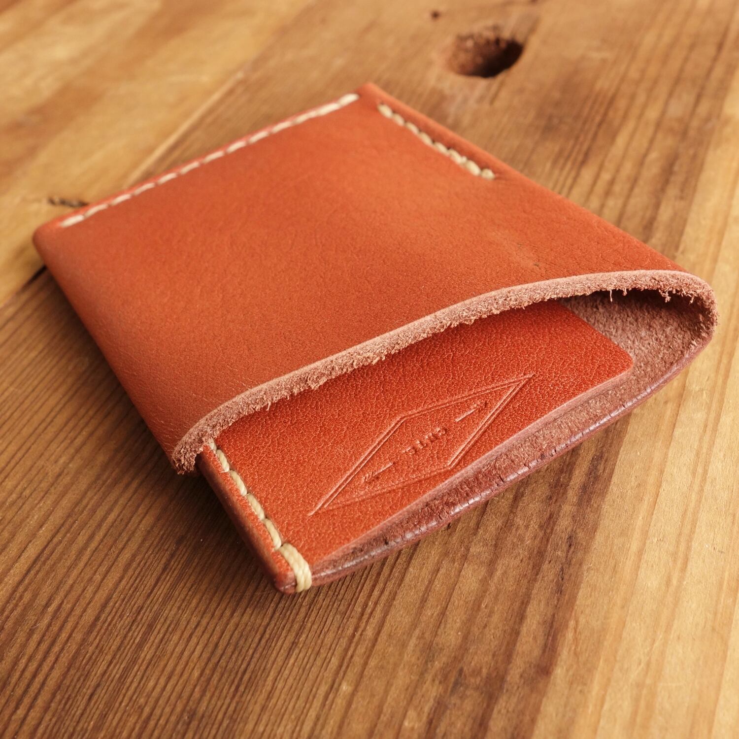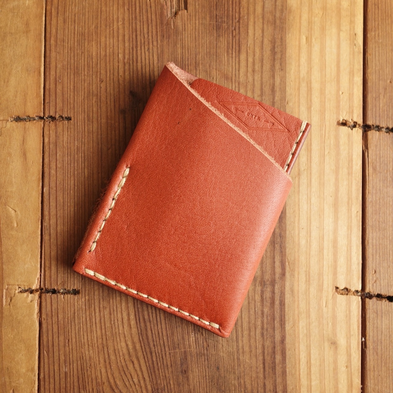 シボ感のある赤茶オイルレザーのカードウォレット。