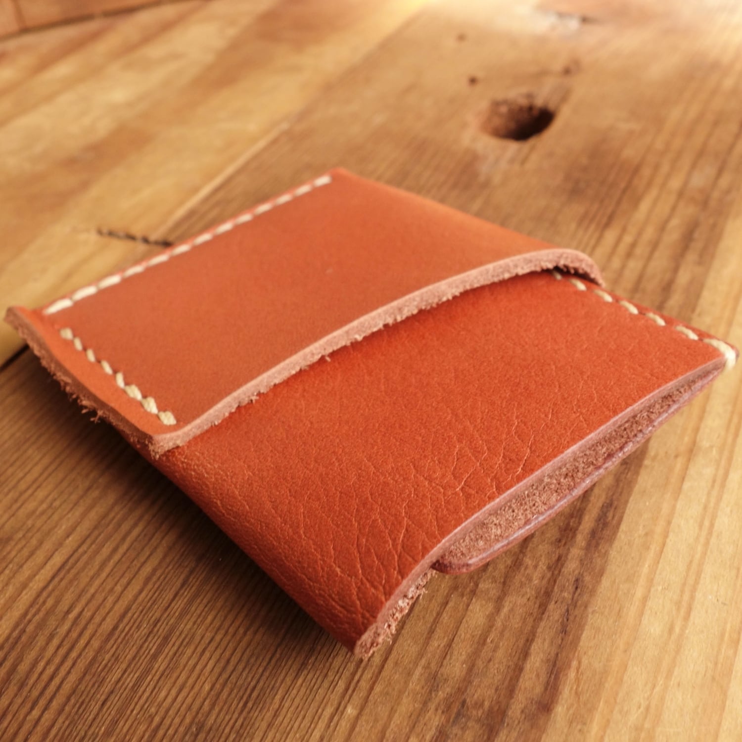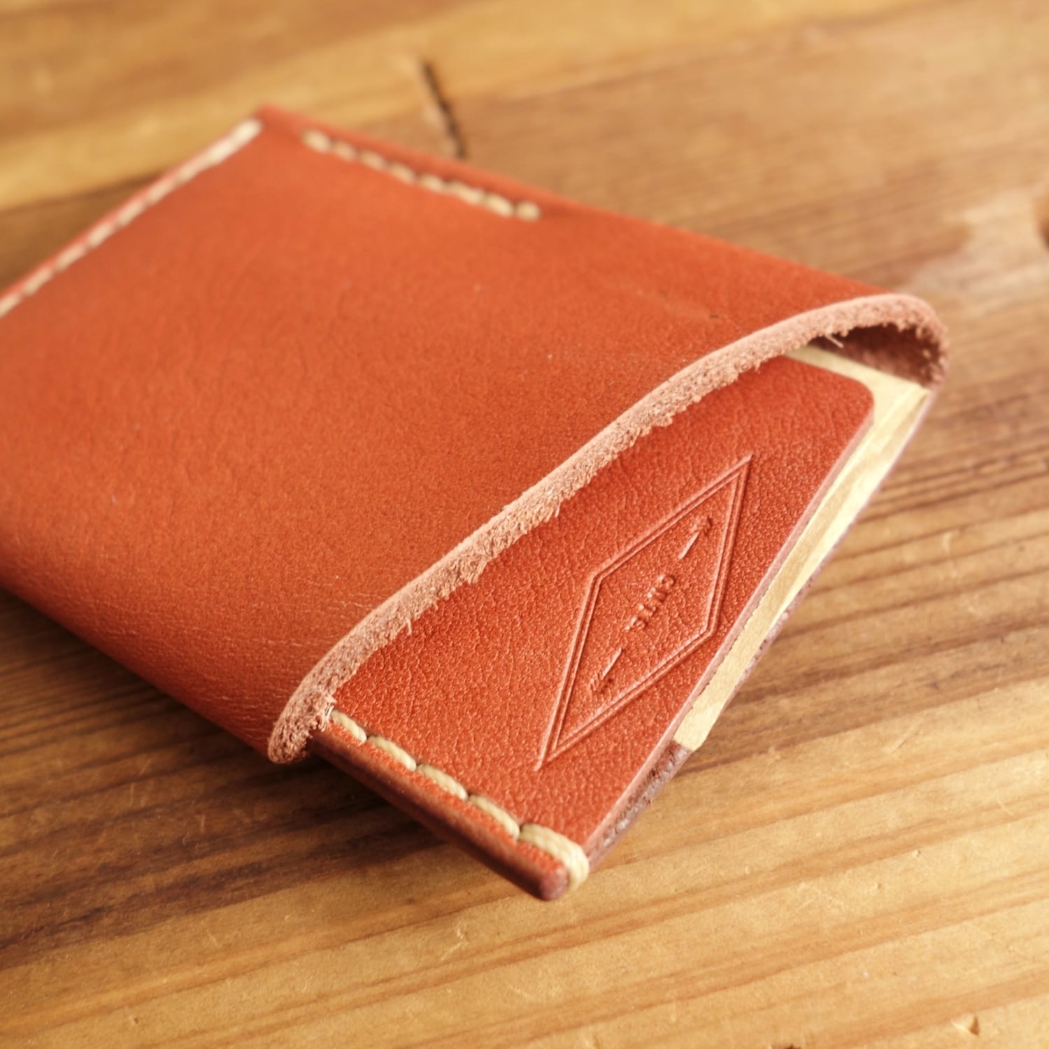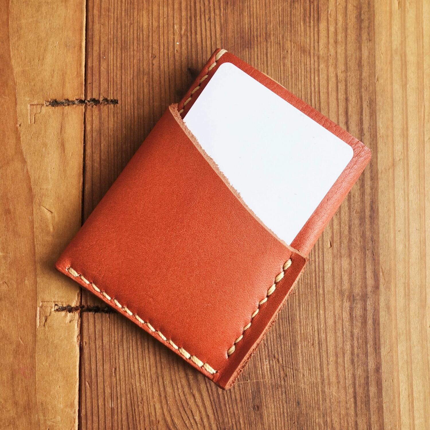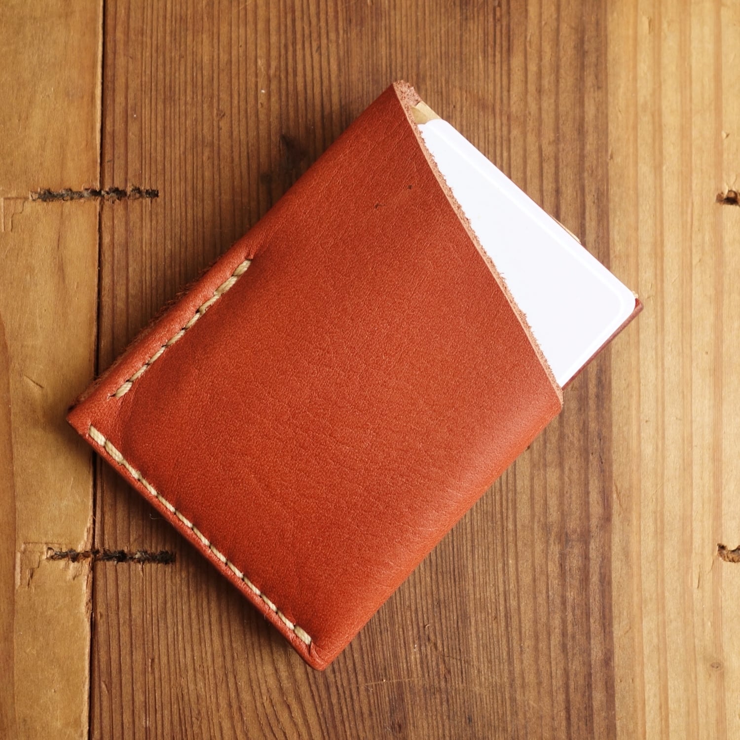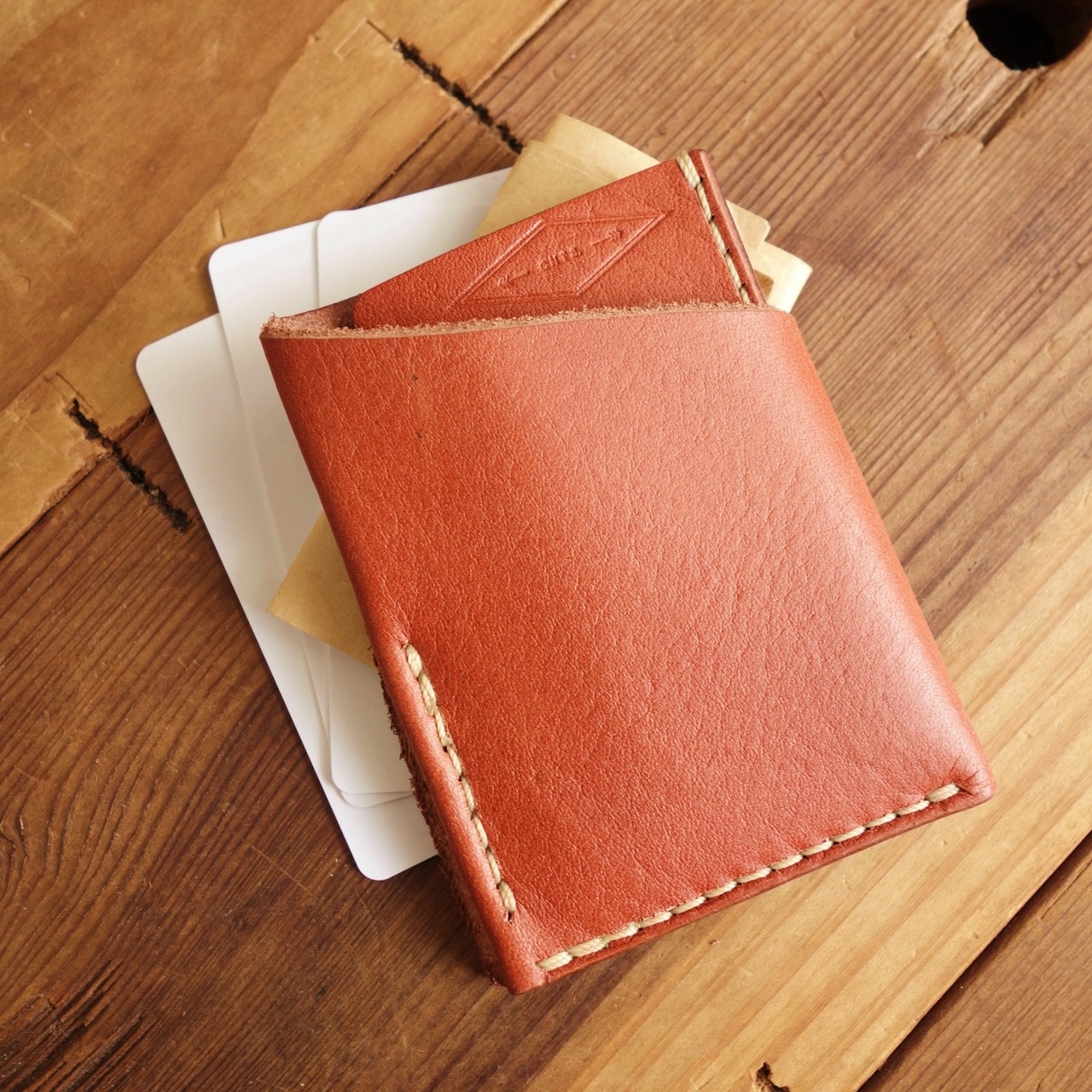 シボ感のある赤茶オイルレザーのカードウォレット。