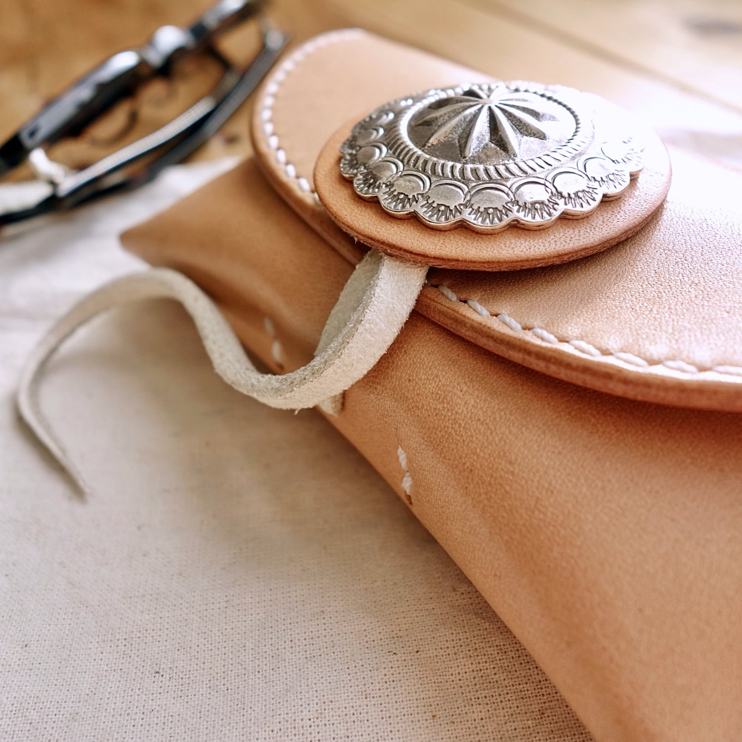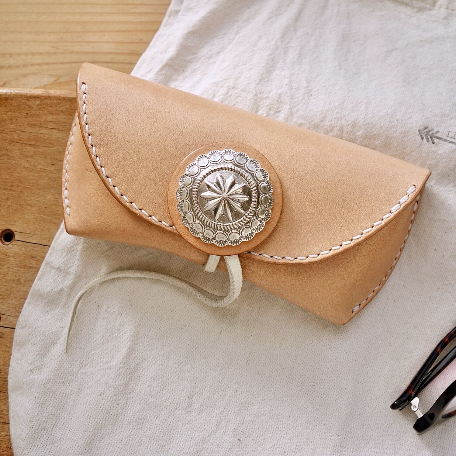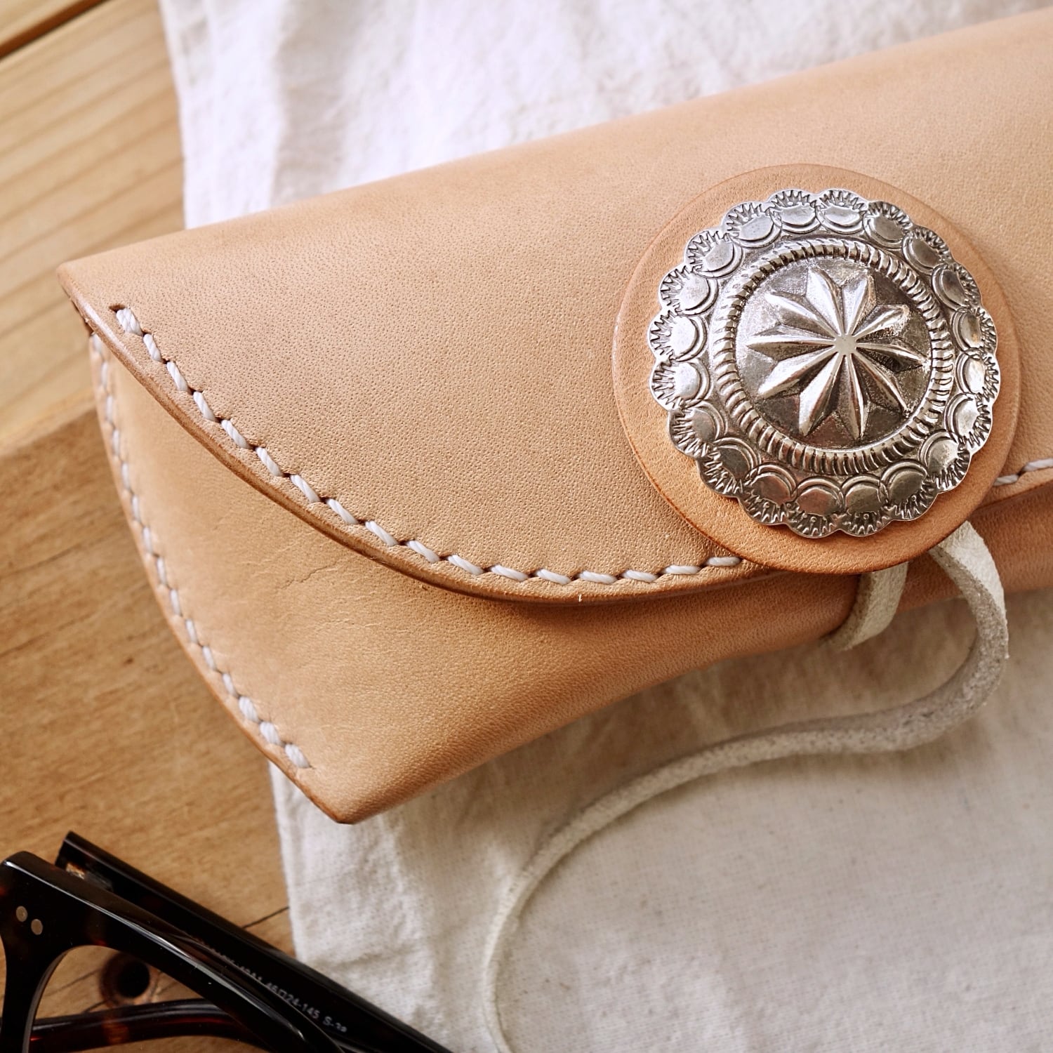 ◇メガネを傷つけないように金具は最小限にコンチョのみ。