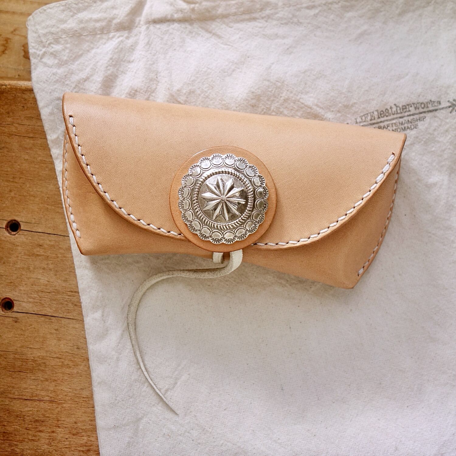 作り立てから使い手様に育ててほしい本革のメガネケースです。